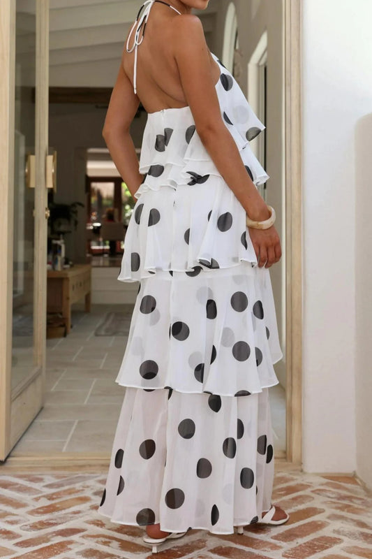 Polka Dot Halter Multi-Layer Cake Long Dress