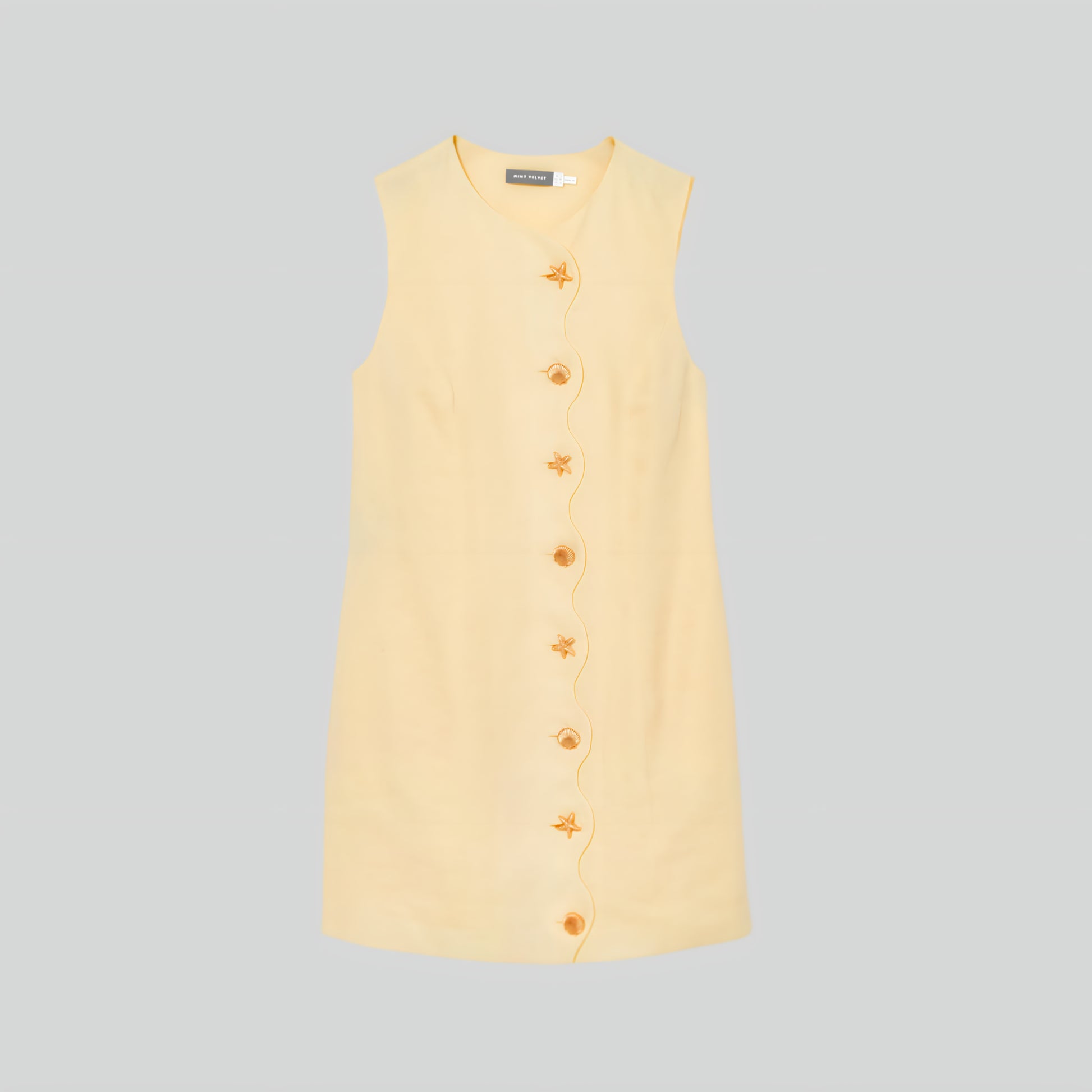 $54.99Sale price $49.99Alzya® Mini Dress in Yellow Linen | Starfish Buttons & Scalloped Hem