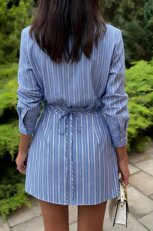 Striped Shirt And Wrap Mini Skirt Set