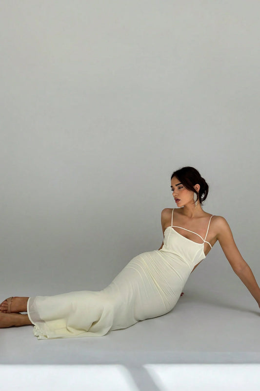 ⋆ Delicate spaghetti straps highlight shoulders with feminine ease