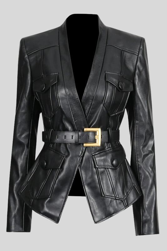 Faux Leather Belted Blazer