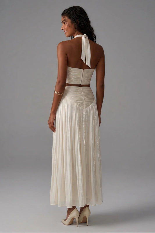 Halter Crop Top and Pleated Skirt Set
