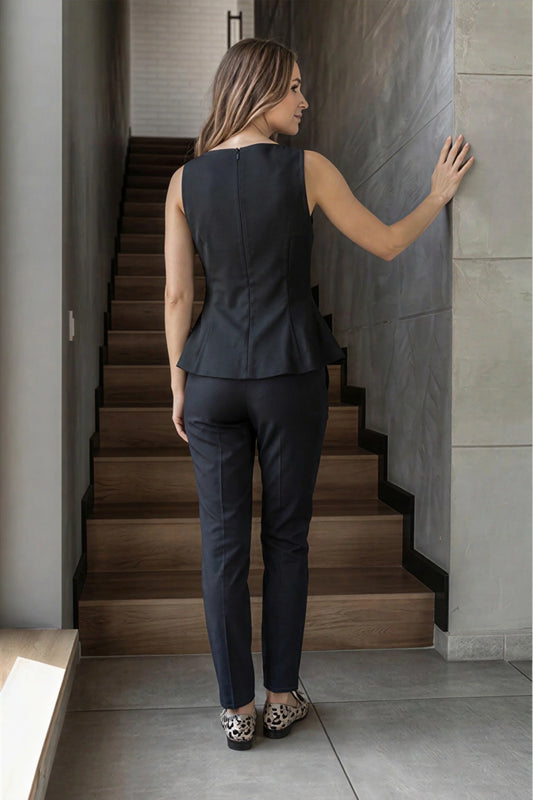 Peplum Sleeveless Top with Decorative Buttons