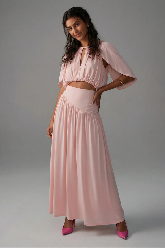 Pleated Skirt Set with Cape Sleeve Top