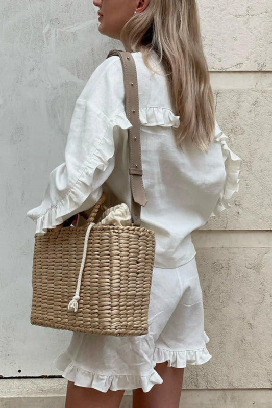 Cotton Ruffle Long Sleeve Short Set